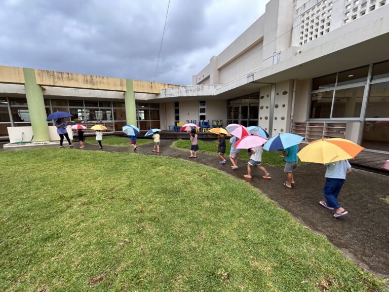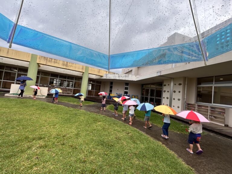 雨の日の園庭さんぽ。