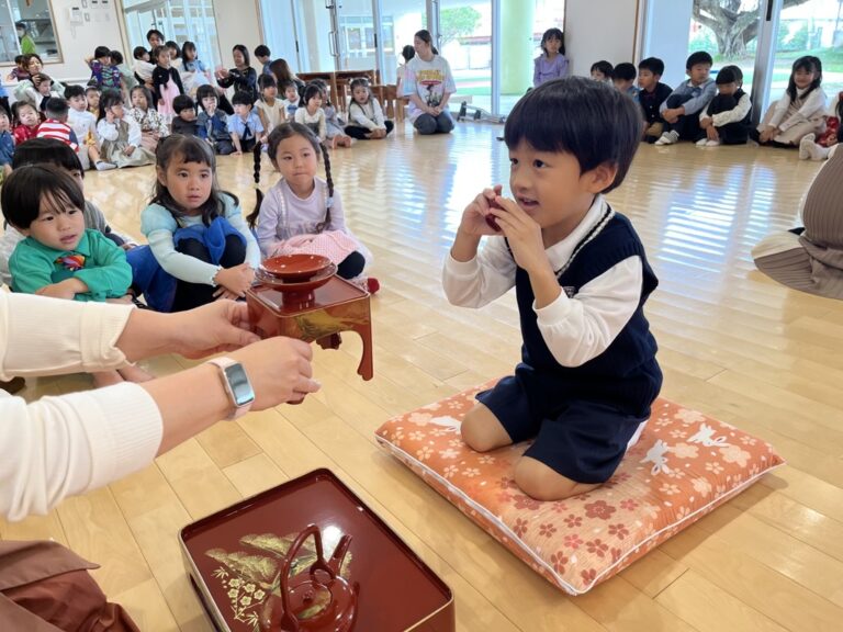 年中・年長の子どもたちがお屠蘇体験に挑戦。