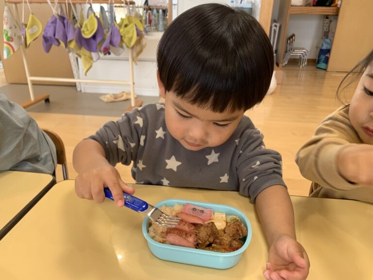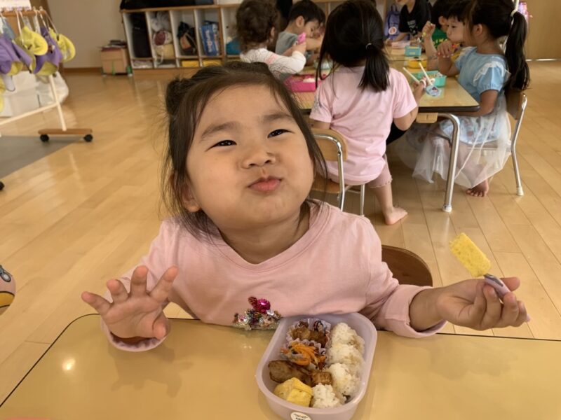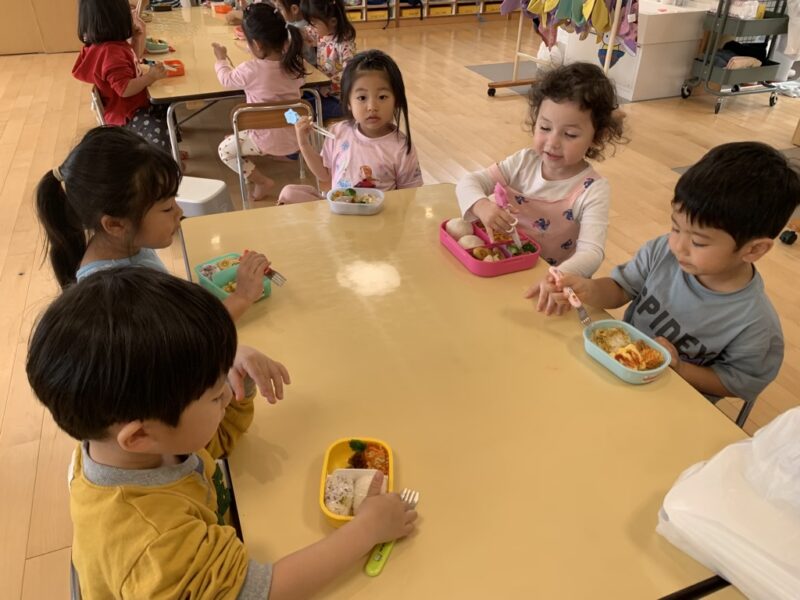 「みてみて!」と嬉しそうに見せ合いながら、楽しく食べていました。